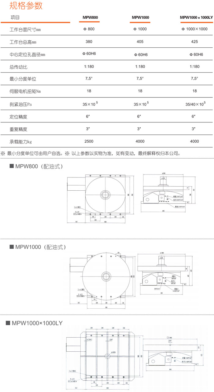 (M)電機驅動 (P)等分轉臺,實現準確分度 (W)臥式,工作臺水平安